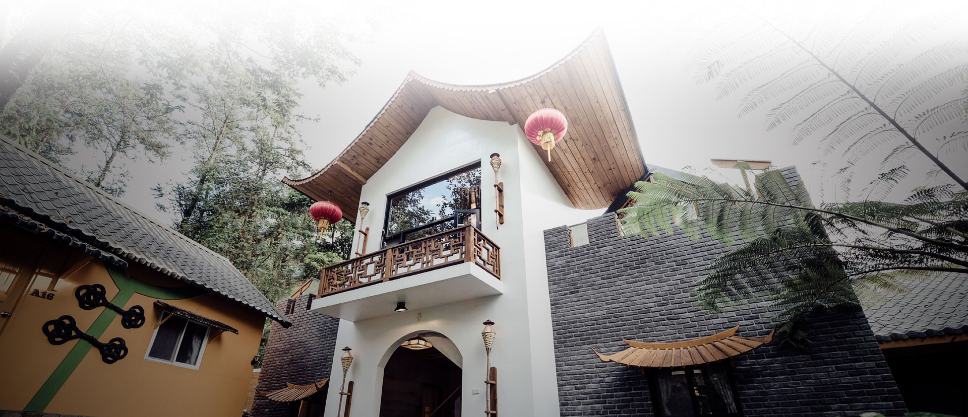 某某精品民宿,竹林山水田园风光,徽派建筑中式元素,